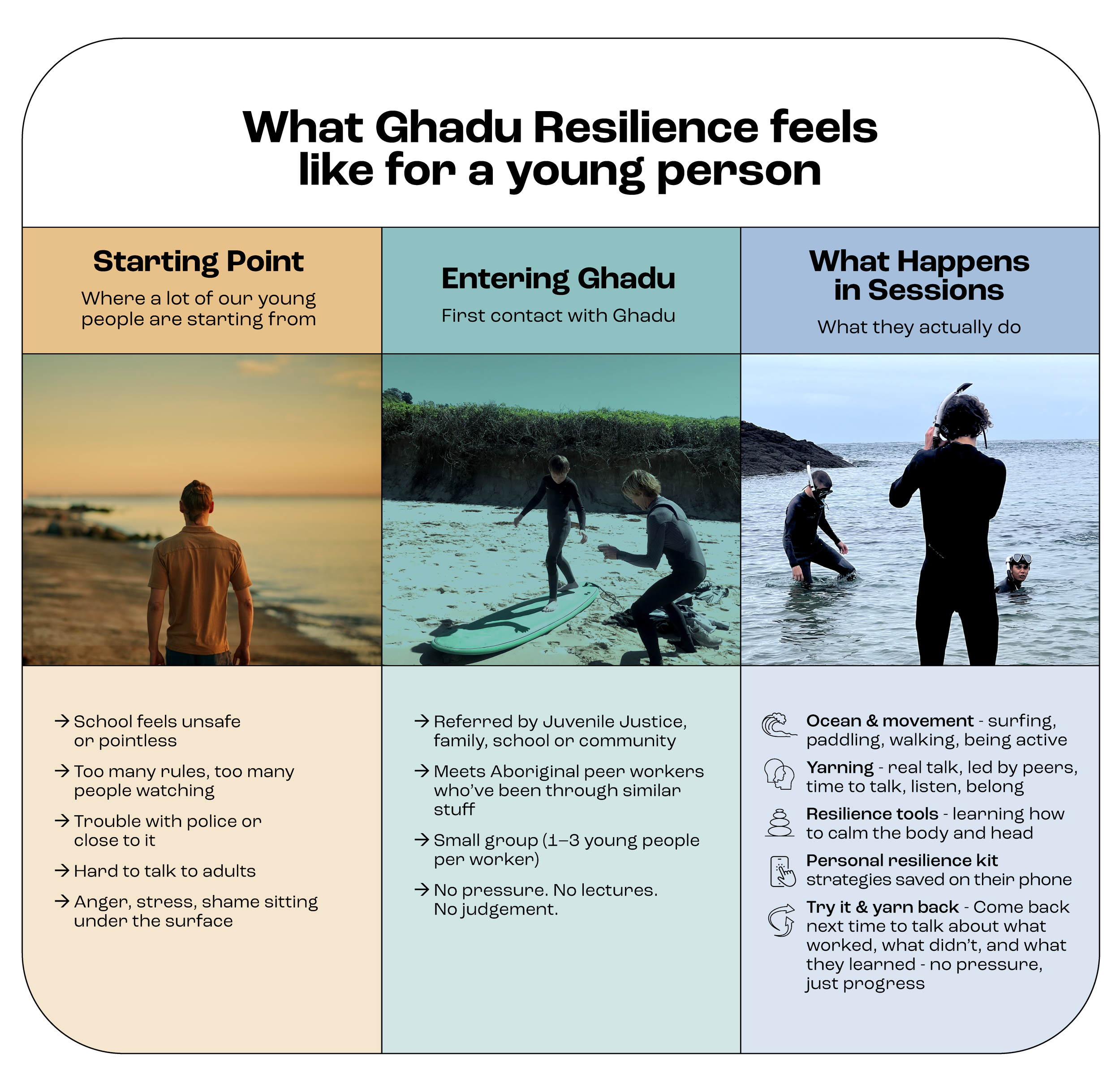 Across his career, Phillip has designed and delivered numerous youth-led projects where young people take active leadership roles — not only as participants, but as presenters, advocates and decision-makers speaking about their own lives and communities. This experience directly informs the Ghadu Resilience approach, where peer workers are supported to co-design the program model, document outcomes, and lead presentations to funders and partners.
